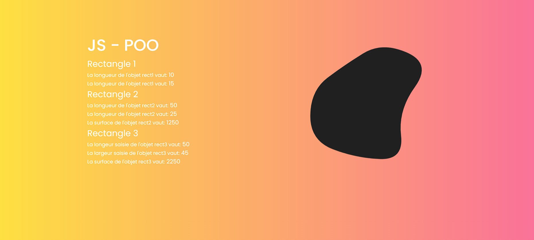 Cet exercice a été réalisé à l'université, durant ce projet il fallait que je retourne une valeur donnée par l'utilisateur via prompt, puis que je calcule cette valeur afin de donner la surface du rectangle